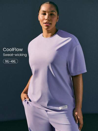 Plus Size Big Easy Cooling Moisture-Wicking Quick-Dry Relaxed Fit Hip Length Crewneck T-Shirt Gym Workout Studio Daily Casual Wear