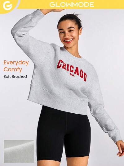 Everyday Fleece Loose V-Neck Hip Length Graphic Sweatshirt Daily Casual Full Winter