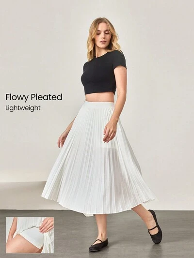Take A Twirl Tummy Control Pleated Maxi Skirt With Built-In Shorts Daily Casual