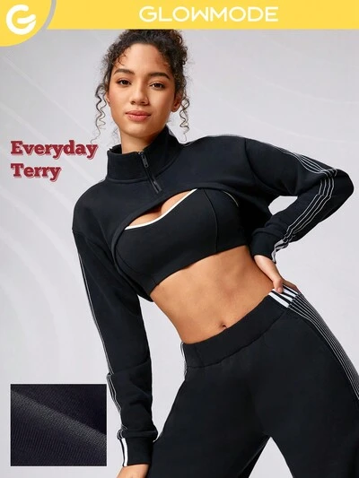 Fleece Half-Zip Curved Hem Workout Long Sleeve Jacket With Zipper Pocket
