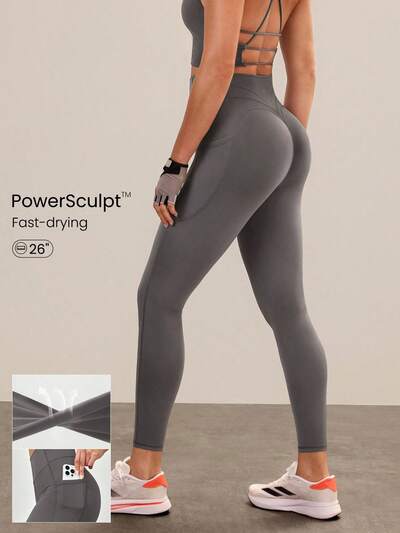 26" Powersculpt™ Prepare For Lift-Off Sweat-Wicking Quick-Dry Invisible Lifting Contouring Side Pockets Compression Leggings High Impact Training Workout Gym Running Active Wear