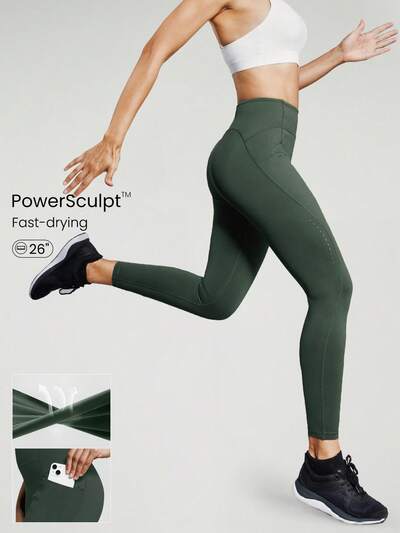 26" PowerSculpt Limitless Adjustable High Waist Leggings With Zipper Pocket Quick Drying