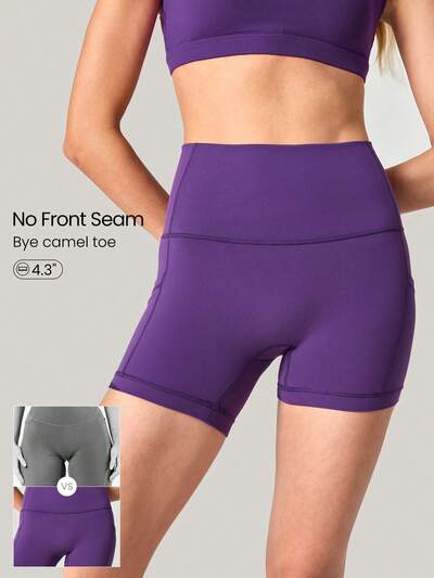 4.3" FeatherFit™ Anti-Slip Pocket Bike Shorts Non Front Seam Low Impact Cycling Running Gym Workout Summer