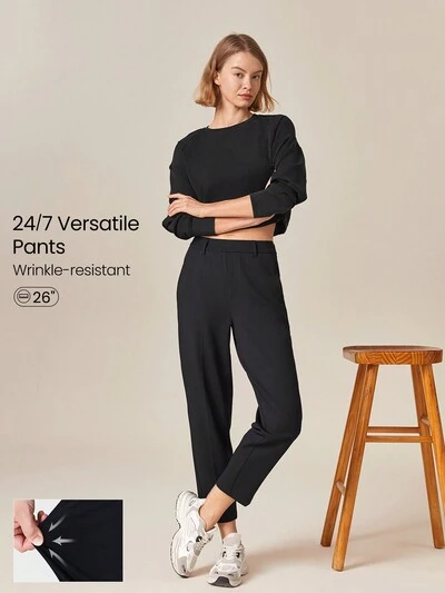 29" Versatile Wrinkle-Resistant Stretchy Straight Leg High-Waist Work Pants With Side Pockets Daily Casual Office