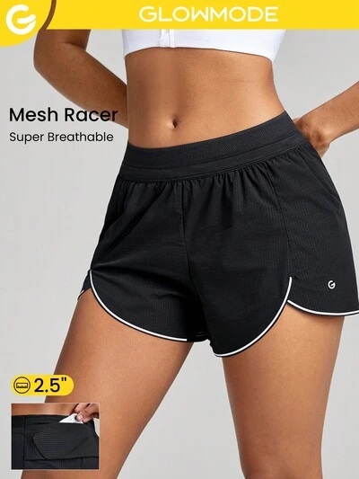 Ultra- Mesh Dolphin Running Shorts Anti-Chafing Slit Drawstring Pocket Reflective High Impact Workout Gym Summer Night Anti-Odor