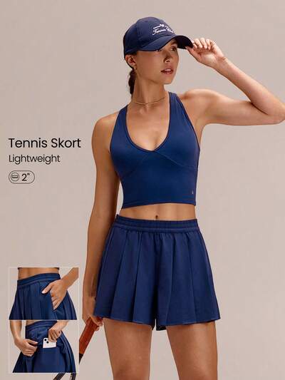 2" VitalSwift Play All Day Lightweight Quick-Dry Stretchy Odor-Control Tennis Skort With Side Pockets Built-In Underwear Tennis Golf Pickleball Daily Casual Wear