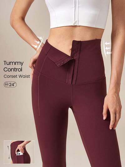 24" FeatherFit™-Sculpt Tummy Control Buttoned Leggings Corset Super High Rise Medium Impact Jogging Gym Training Daily