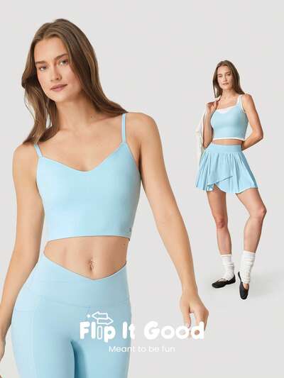 Flip It Good Make It Ultra Sleek Longline Reversible Sports Bra Low Impact Yoga Pilates Daily Casual Removable Cups