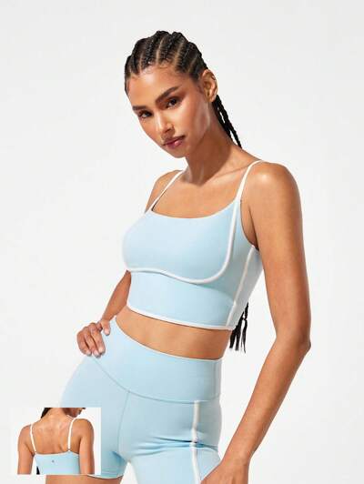 FeatherFit™ Two-Tone Spaghetti Straps Longline Sports Bra Tank Top Low Impact Yoga Pilates Daily