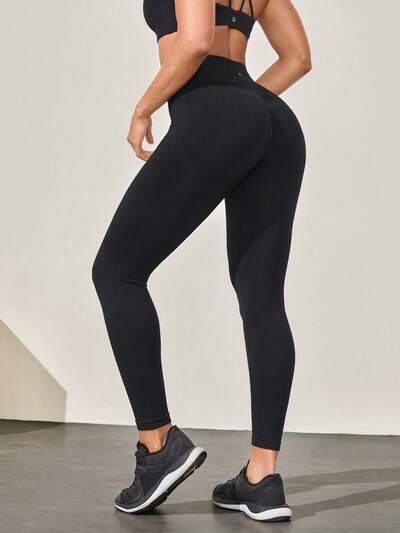 24" Seamless Tummy Control Butt Scrunch Shaping Leg Seam V Back Waist Leggings Medium Impact Workout Jogging Gym Training