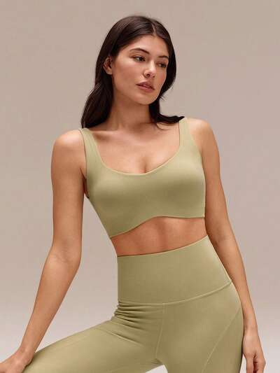 FeatherFit™ Lovely Day Buttery-Soft Sweat-Wicking Adjustable Straps Removable Cups Ruched Sports Bra Low Impact Yoga Pilates Studio Daily Wear
