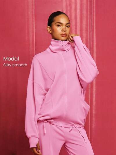 Softserene Modal Chill Days Oversized Seidig Glatte Atmungsaktive Jacke mit weitem Kragen, Kordelzug-Saum und Reißverschluss, Alltags Lässig Tragen Herbst Winter