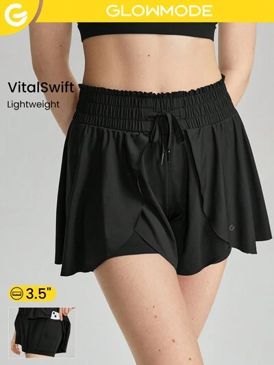 Shorts de tenis fluidos con cordón de 3,5" con bolsillo interior para ropa interior incorporado, soporte ligero antideslizante para yoga, estudio de gimnasio y uso diario