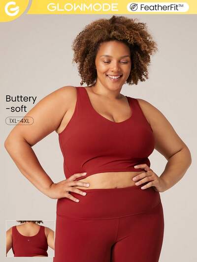 Top de deportes de impacto bajo tipo sujetador deportivo con cuello y espalda en U, recortado, con copas extraíbles para yoga y uso diario FeatherFit™