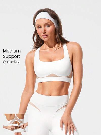 Sujetador deportivo de FeatherFit™ -Sculpt Stamina con paneles de malla con forma de corazón en el cuello, espalda de tirantes, banda ajustable y copas desmontables, para impacto medio, para correr, trotar, entrenar, gimnasio y actividades al aire libre