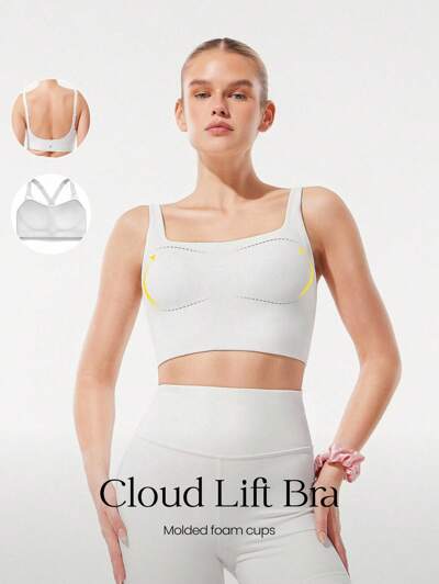 FeatherFit™ Sujetador deportivo de cuello cuadrado con copas moldeadas de espuma, tirantes ajustables, elástico y transpirable, ideal para yoga, pilates, gimnasio y actividades diarias de bajo impacto