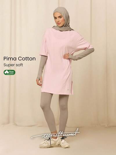 Vestido camiseta de algodón pima X Reem Modest, de corte midi, suave, transpirable y ligero, con abertura lateral, para uso diario y casual