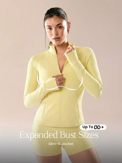 FeatherFit™ Pour DD+ Slim-It Streamline Performance Poches Sécurisées Veste Zippée à Manches Longues Yoga à Faible Impact Automne Quotidien