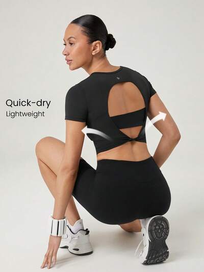 Top court actif à manches courtes avec dos croisé sans couture, sans souci, avec coussinets amovibles, pour un port quotidien et décontracté