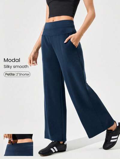 Pantalon de jogging à taille haute et jambes larges en modal au toucher soyeux avec poches latérales, décontracté pour tous les jours en automne