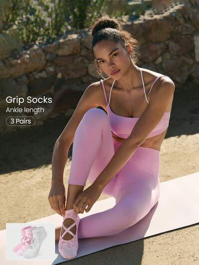 3 paires de chaussettes noires antidérapantes, sans couture, avec sangles pour la cheville, pour le yoga et le pilates