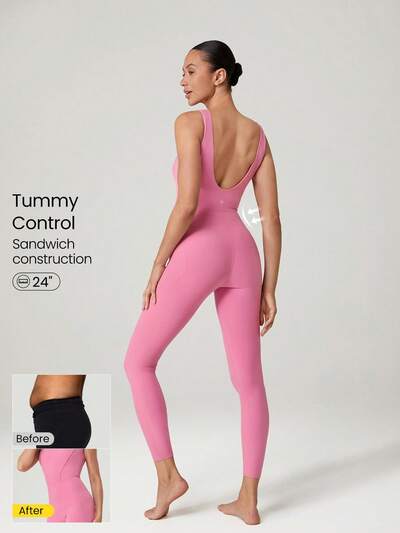 Combinaison de sport élégante pour femme d'été avec contrôle du ventre et dos ouvert, 24" FeatherFit™