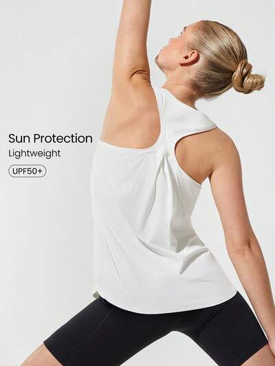 Débardeur décontracté à manches courtes style lâche avec protection solaire UV, col rond, usage quotidien, convient pour le yoga, le pilates, le barre studio et autres activités