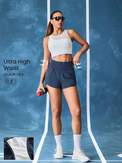 Pantaloncini sportivi VitalSwift ultra vita alta, vita elastica, schiena ventilata, laccetto regolabile, con pantaloncini interni, ad alto impatto, per running, jogging, allenamento in palestra