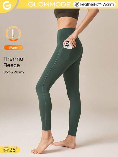 Leggings con vita alta da palestra in pile da 26" con tasche laterali, adatti per l'autunno e l'inverno