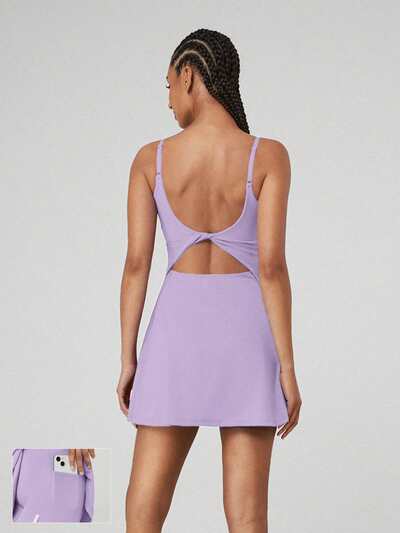 Abito da attività leggera FeatherFit™-Air, con pantaloncini integrati, tasche laterali, reggiseno rimovibile, spalline regolabili, adatto per yoga, pilates, barre e uso quotidiano casual