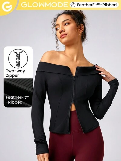 Giacca Con Cerniera A Doppio Senso In Spalla Scoperta, A Costine, Quotidiana, Pronta Per L'uso, Featherfit™