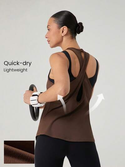 速乾性 フルスペクトラム スリムフィット クロスオーバー カットアウトバック アクティブタンクトップ ミディアムインパクト ランニング ジョギング トレーニング ジム ワークアウト