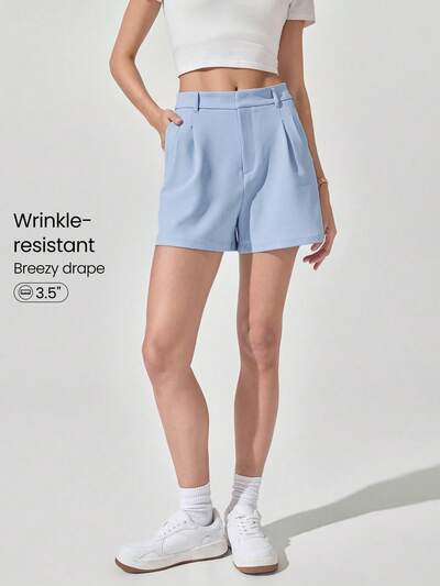 ウリンクルレジスタント ウエストゴム フロントジップ ワークショーツ サイドポケット デイリーカジュアル オフィス 作業 レジャー