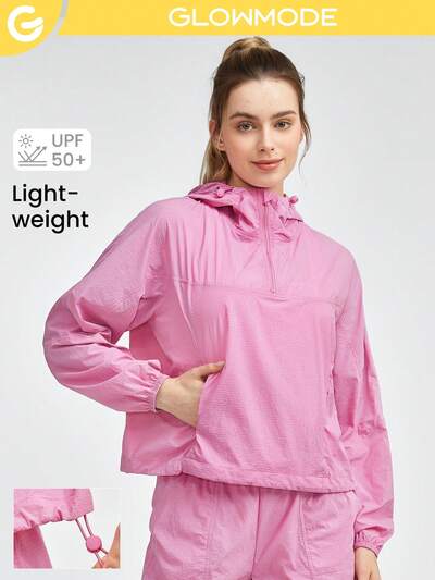선 방지 파셜 메시 드로우코드 후드 재킷
