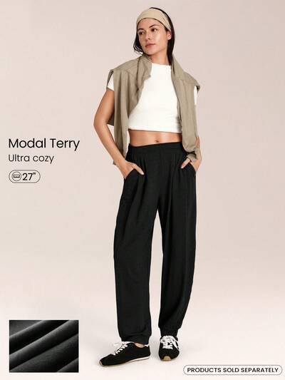 모달 테리 에브리데이 스트리트 부드러운 통기성 조절 가능한 드로스트링 허리 옆 슬립 포켓 와이드 레그 팬츠 데일리 캐주얼 스트리트웨어