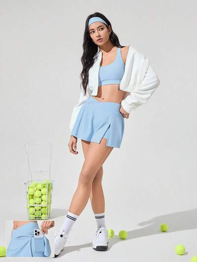4" Quick-Dry Criss Crossover Waist Side Slits Built-In Shorts Side Pockets Non-Slip Mini Skirt Low-Impact Yoga Pilates Studio Daily Casual Wear