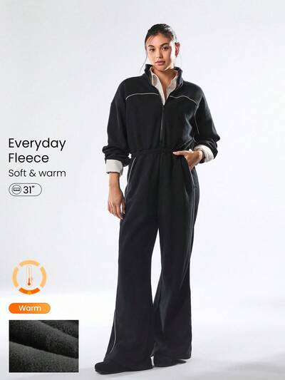 31" Everyday Fleece Comfy Hour Soft Lightweight Warm Chill Front Zipper Contrast Stripes Butt-Lifting Side Pockets Bodysuit Autumn Winter Daily Casual