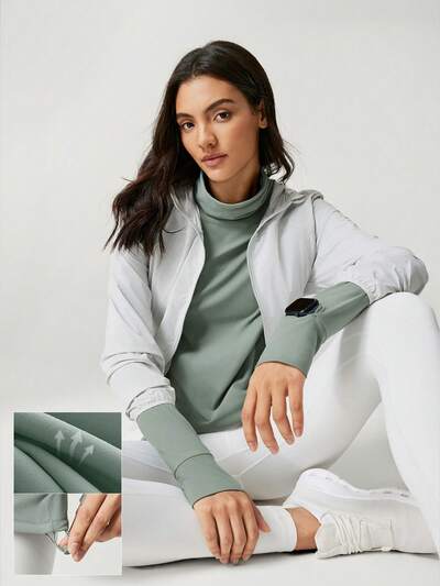 Quick-Dry Sweat-Wicking Adjustbale Drawstring Neck Hem Long Sleeves Active Top Tee With Side Zip Pockets And Thumbholes Daily Casual