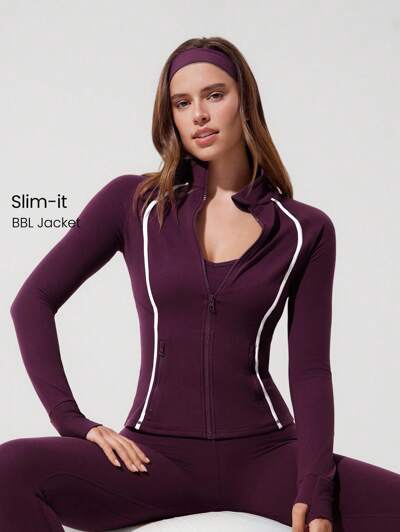 FeatherFit™ Slim-It Streamline Performance Secure Pockets Zip Up Long Sleeve Jacket Low Impact Yoga Pilates Daily Fall