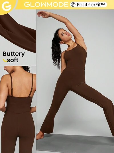 6" FeatherFit™ Tummy Control Square Neck U Back Jumpsuit Light Support Low Impact Yoga Pilates Studio Summer Spring