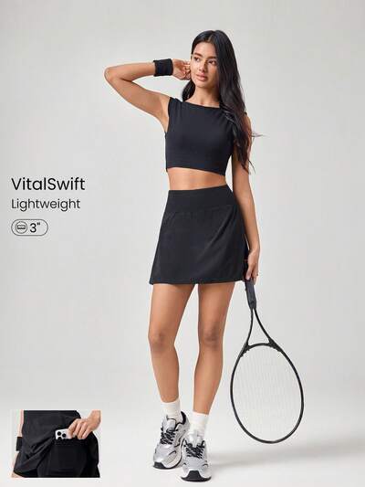 VitalSwift Quick-Dry Pocket Drawstring Pleated Mini Skirt With Built-In Shorts Light Support Tennis Golf Gym Summer Quick Dry Moisture Wicking