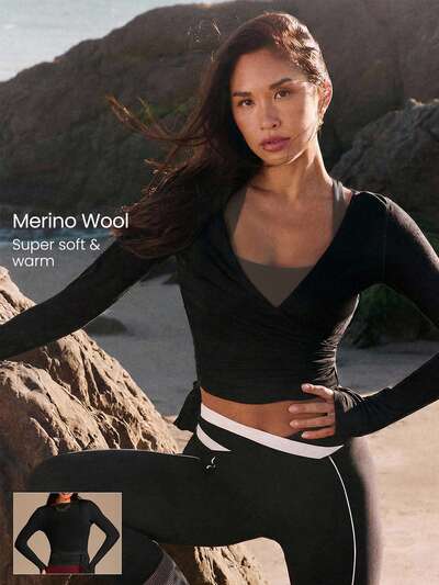 Parte superior envolvente de manga larga con cuello en V, reversible, de tela Tencel, lana y plumón, suave y cálida, con cintura anudada, ideal para otoño, invierno, yoga, pilates y uso diario casual