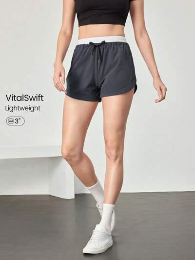 Short diario y casual de 3" VitalSwift de secado rápido con doble cintura, cordón ajustable en la cintura y bolsillo con cremallera lateral