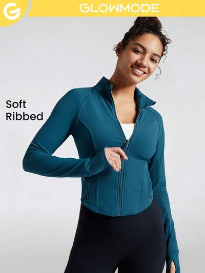 Chaqueta Entallada Con Bolsillo Con Cremallera, Curvada, Acanalada, Con Agujeros Para El Pulgar