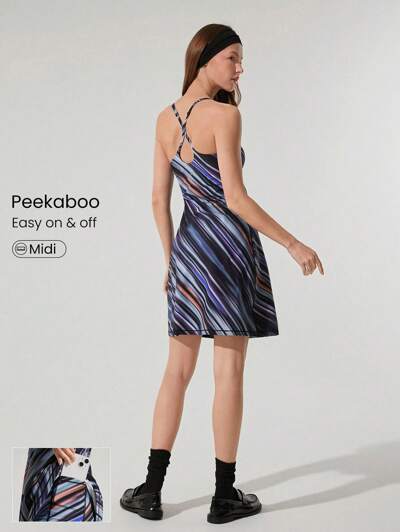 Sukienka FeatherFit™-Air Peekaboo z regulowanym dekoltem typu racerback i kwadratowym dekoltem, z kieszenią, antypoślizgowa, wytrzymała, ze wbudowanymi spodenkami, lekkie wsparcie, studio jogi o niskim wpływie, letnie, szybkie schnięcie, odprowadzanie wilgoci