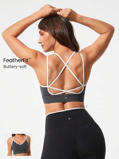 Biustonosz sportowy FeatherFit™ X Marks The Spot Kwadratowy dekolt Szerokie ramiączka Krzyżujące się plecy Kontrastowy kolor Niski wpływ Joga Codzienne wyjmowane miseczki