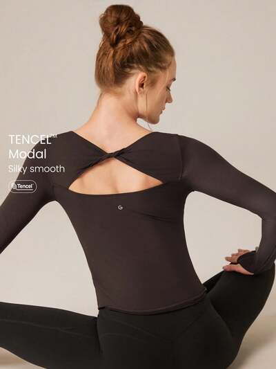 TENCEL™ Modal Drift Off Lekki, jedwabisty, gładki, asymetryczny top z odkrytymi ramionami, z długim rękawem, aktywny, do jogi i pilatesu, do siłowni, na co dzień
