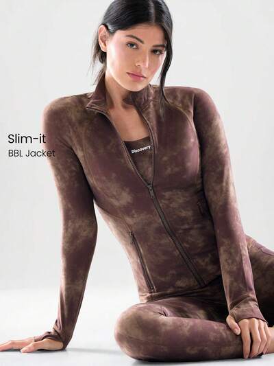 Kurtka FeatherFit™ Slim-It z długim rękawem i zapięciem na suwak, do jogi, na co dzień i jesienią, o niskim wpływie
