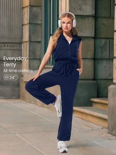 Macacão com Capuz de 24" Dia a Dia Terry Glow Hero, Tecido Absorvente de Suor, Zíper Frontal, Cordão Ajustável na Cintura, Bolsos Traseiros, Barra Canelada