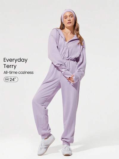 Macacão com Capuz de Zíper, Cintura Elástica, Elevador de Bumbum, Bolsos Laterais, Uso Casual Diário, 61cm